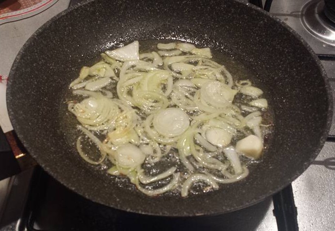 Tagliare le cipolle a rondelle e metterle a soffriggere in una padella con un filo d'olio.. Appena prendono il loro colore aggiungere un cucchiaio di zucchero e continuare la cottura per pochi minuti.